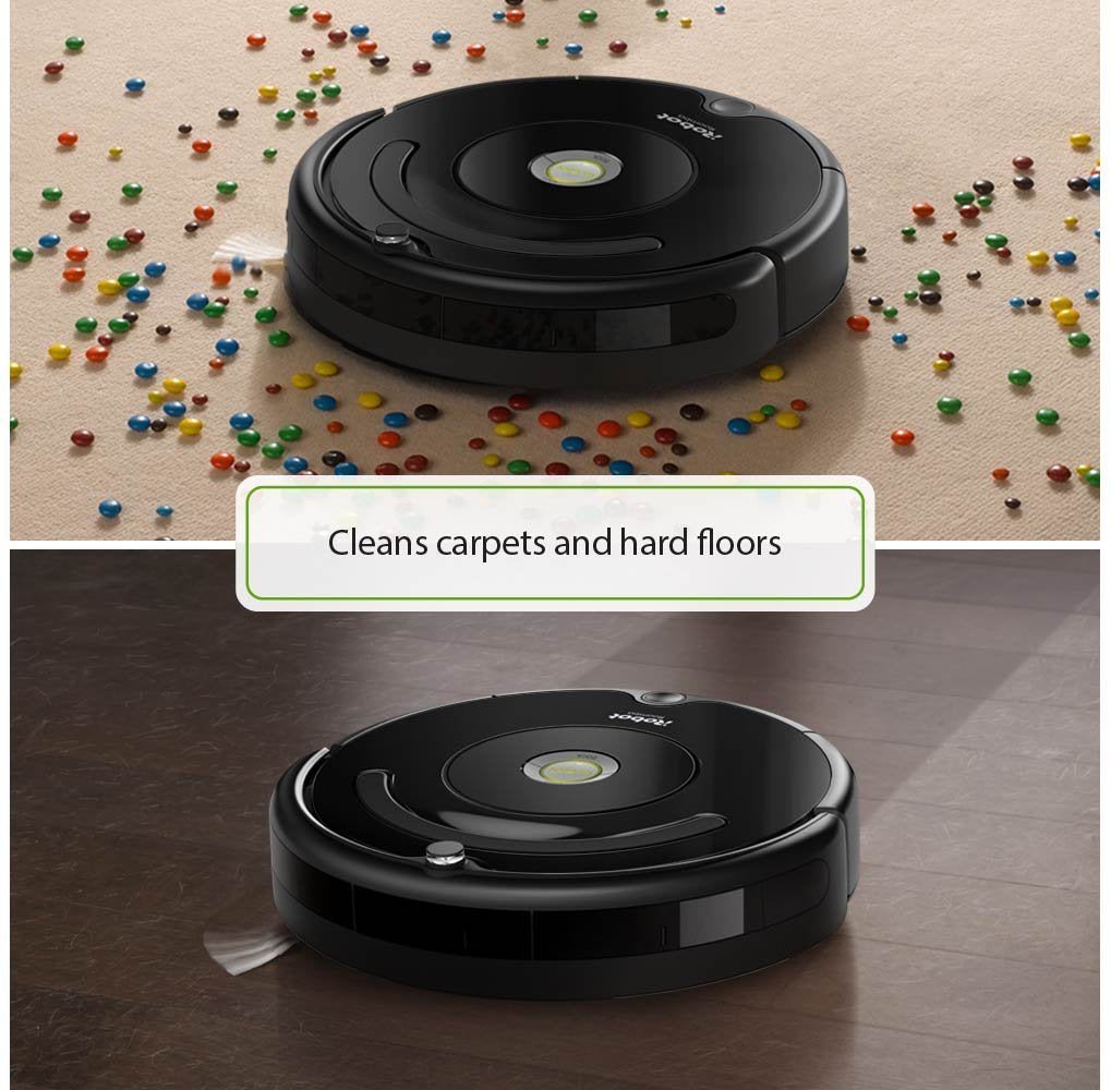 Connect to clean from anywhere with the Roomba 675 robot vacuum. The patented 3-Stage Cleaning System is specially engineered to loosen, lift, and suction everything from small particles to large debris from carpets and hard floors. Just press Clean or schedule Roomba on the go with the iRobot HOME App.