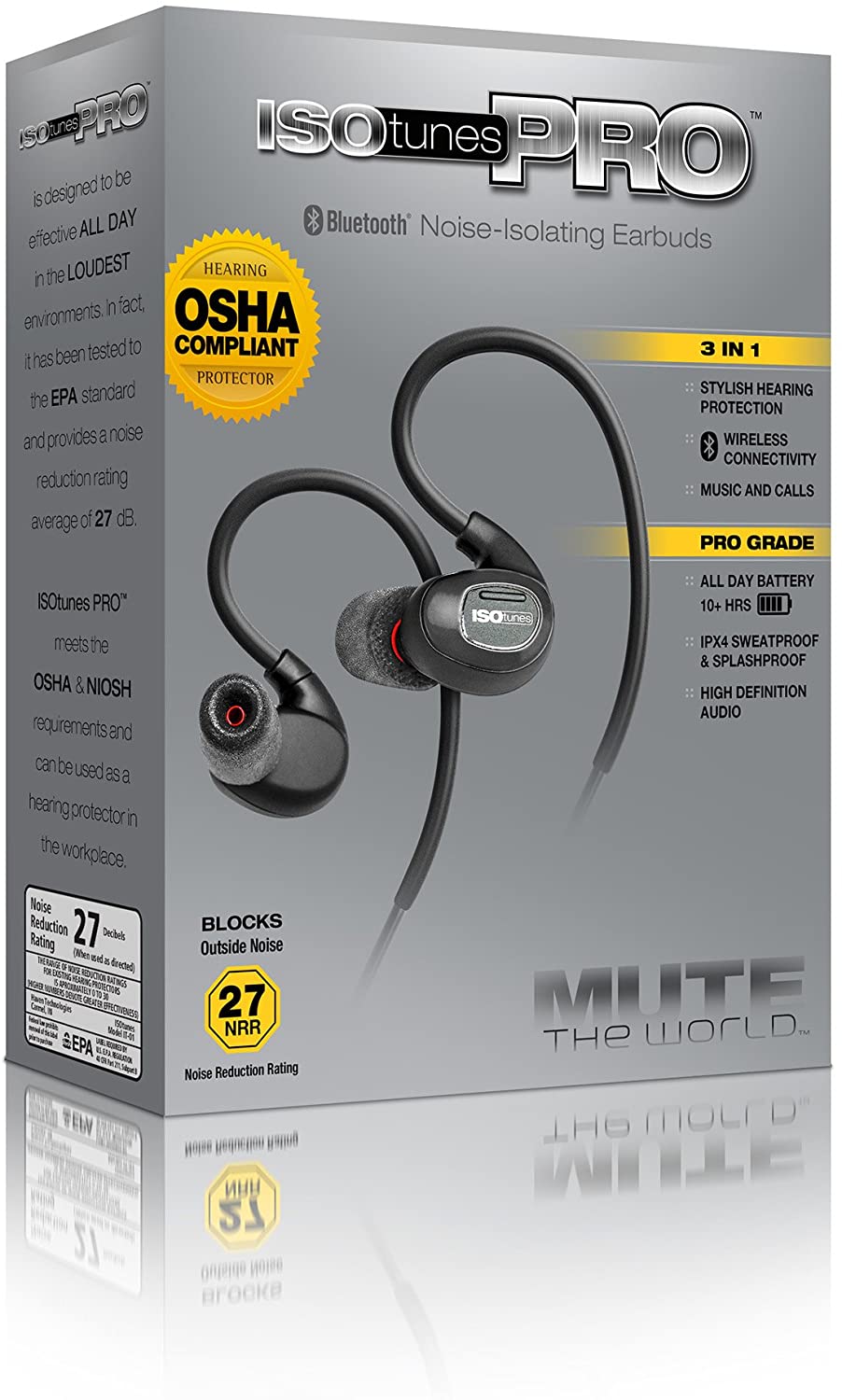 - BLOCK NOISE: heat-activated memory foam eartips expand like earplugs to significantly reduce outside noise. ISOtunes PRO hearing protection headphones are ANSI-certified and OSHA-compliant with a 27 dB Noise Reduction Rating (NRR) and ISOtunes SafeMax Technology. Comes with 4 pairs of foam eartips and 1 pair of silicone triple-flange eartips.