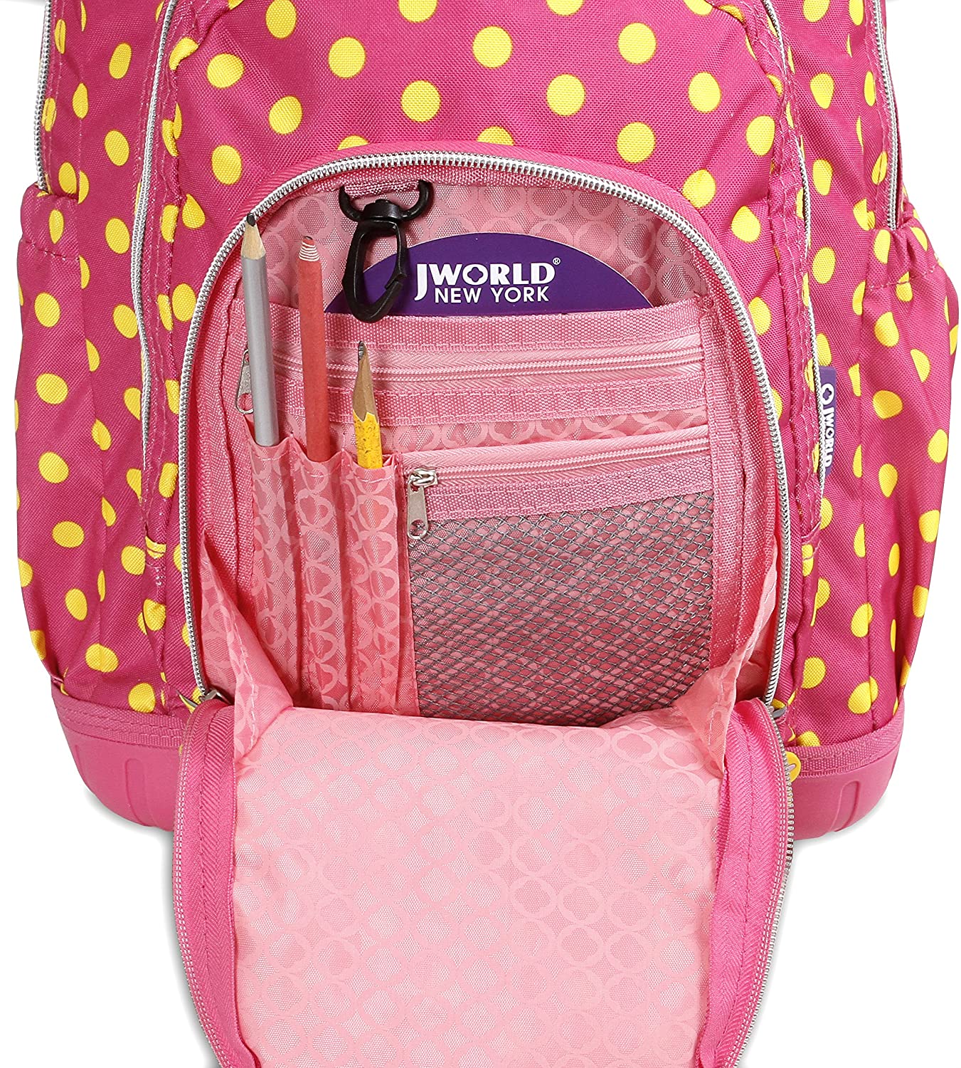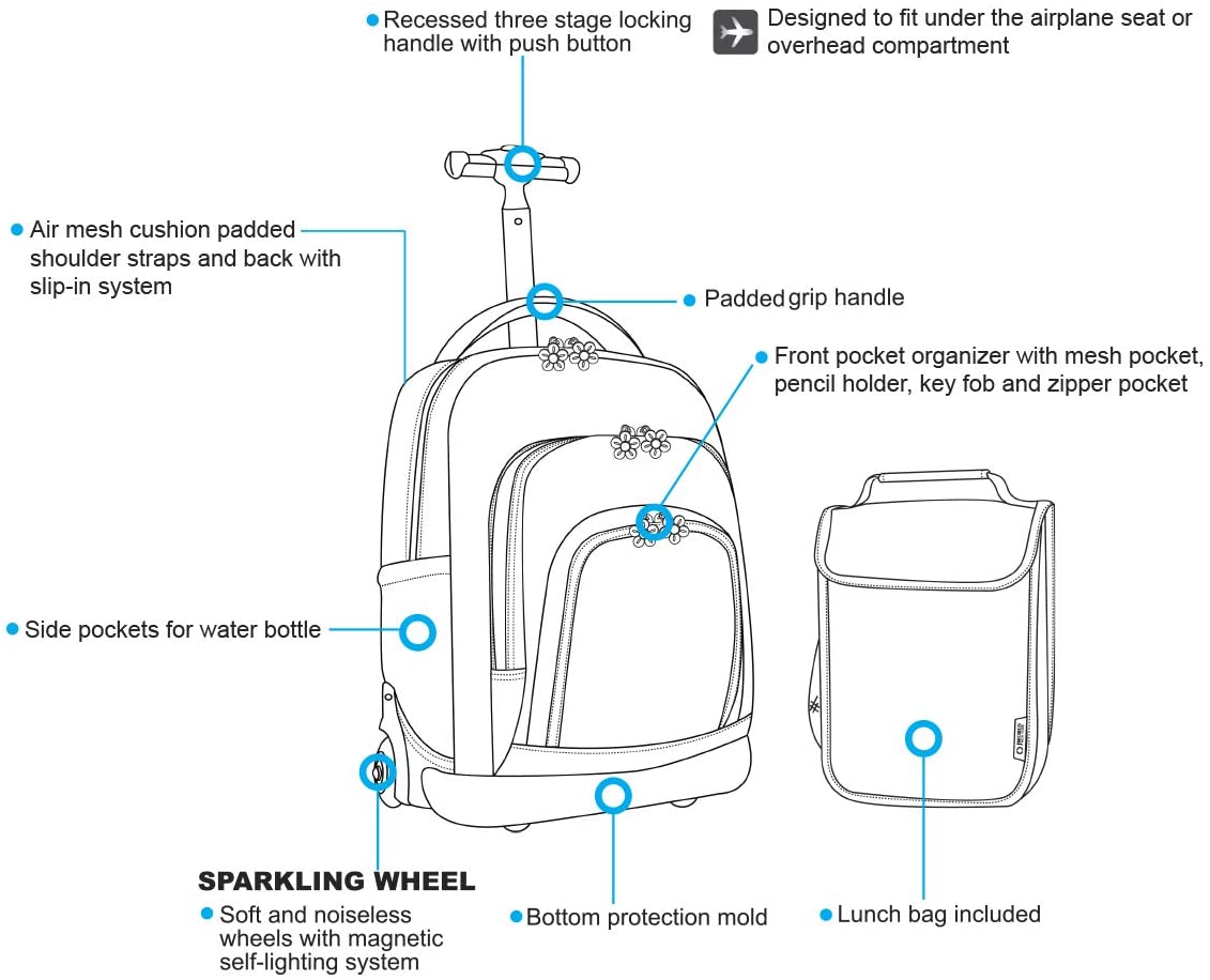 J World Lollipop Kids Rolling Backpack & Lunch Bag Set for Elementary School. Carry-On Suitcase with Wheels