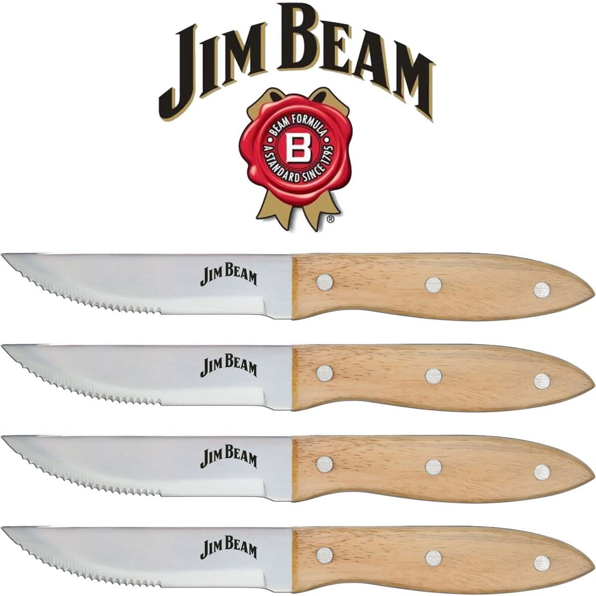 Jim Beam Steak Knife Set (4 Pack), JB0165, 10", Brown