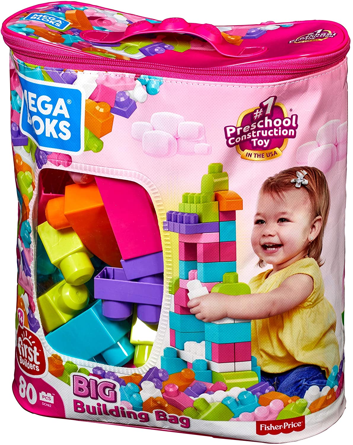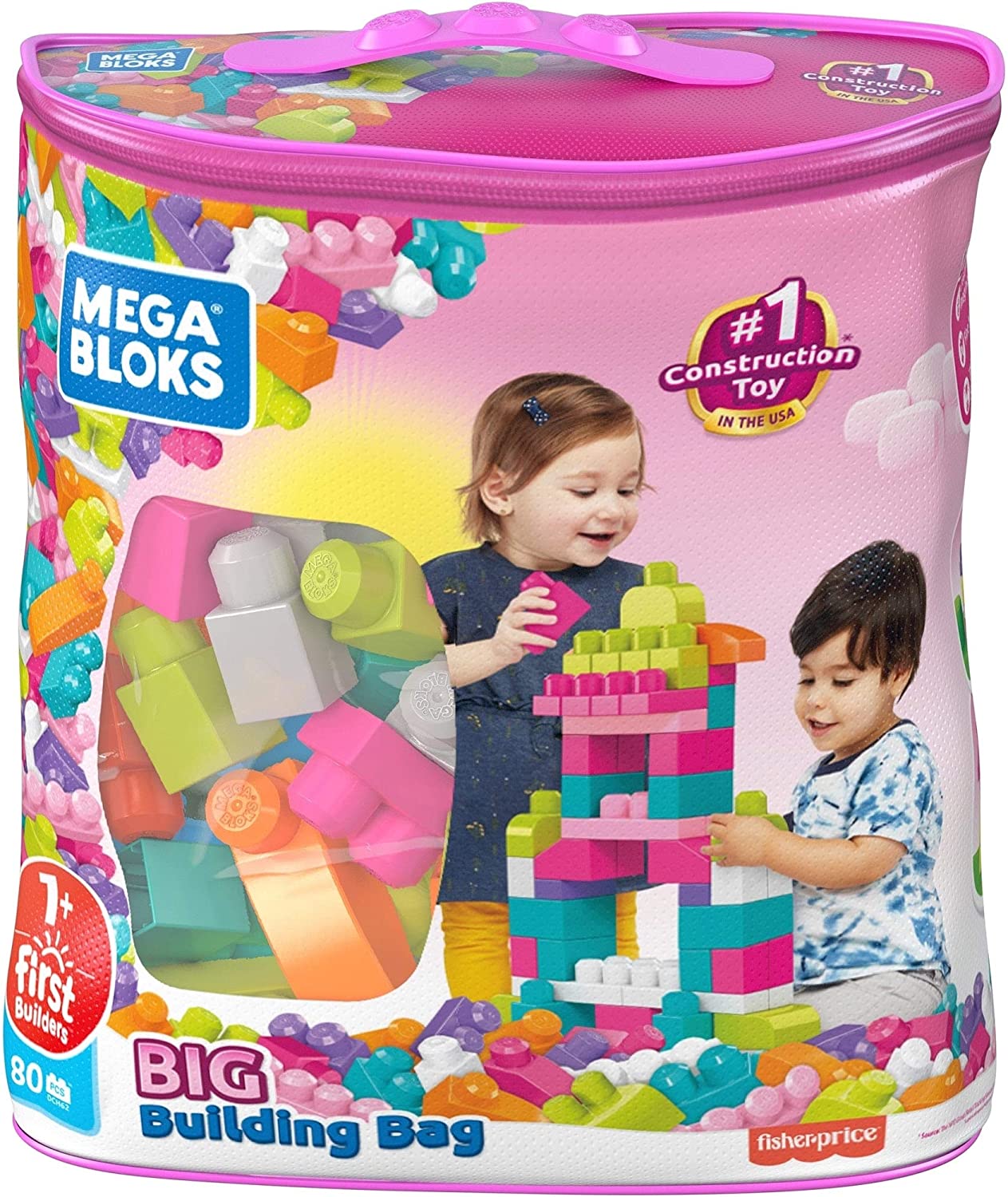 Endless creativity with 80 award-winning big building blocks! Build, stack, and explore endless construction possibilities with this award-winning set of 80 big building blocks in sweet colors! Now your little one can build anything they imagine when they use the blocks and special shapes to create tall towers, crazy castles, funny animals, or whatever else they dream up! Perfect for little hands, these big blocks fit together and come apart easily, helping your child to develop fine motor skills and creativity over hours of open-ended play. When playtime's over, cleanup is easy with the handy storage bag.