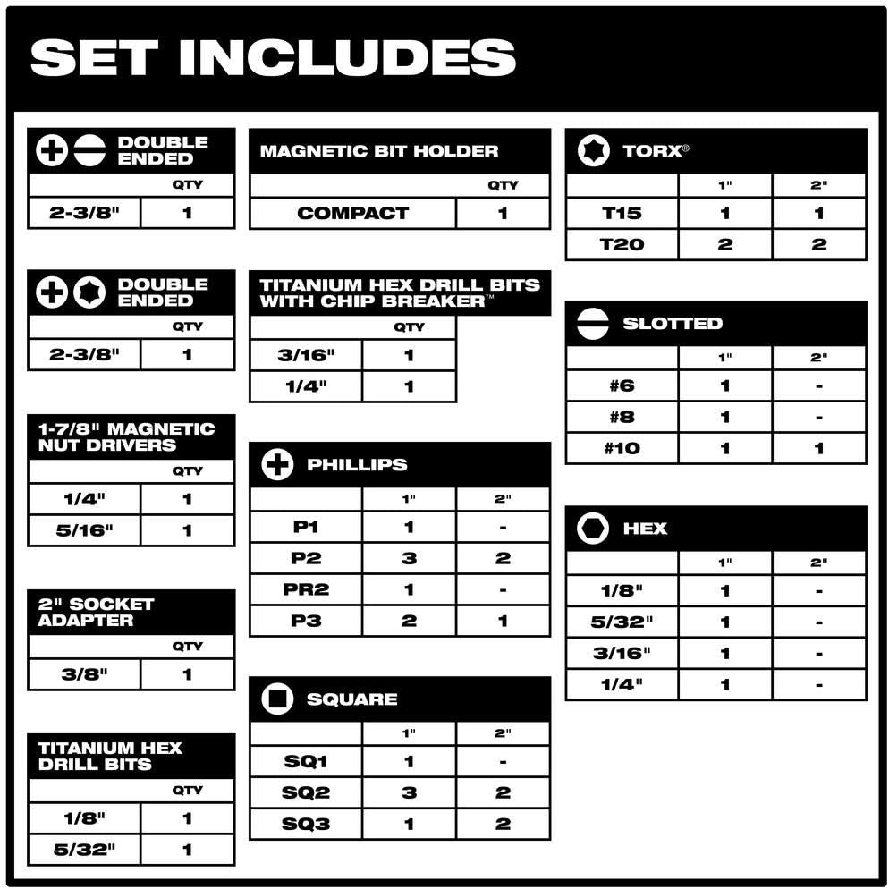 Milwaukee Shockwave Impact Duty driver bits are engineered to be the most durable, best fitting driver bits on the market. The optimized Shock Zone geometry is unique for each tip type to provide up to 30X longer life and absorb 3X more torque versus other impact bits. Shockwave driver bits are built to deliver extreme durability for the most demanding applications. Shockwave Impact Duty driver bits can be used in impact drivers or drill drivers.