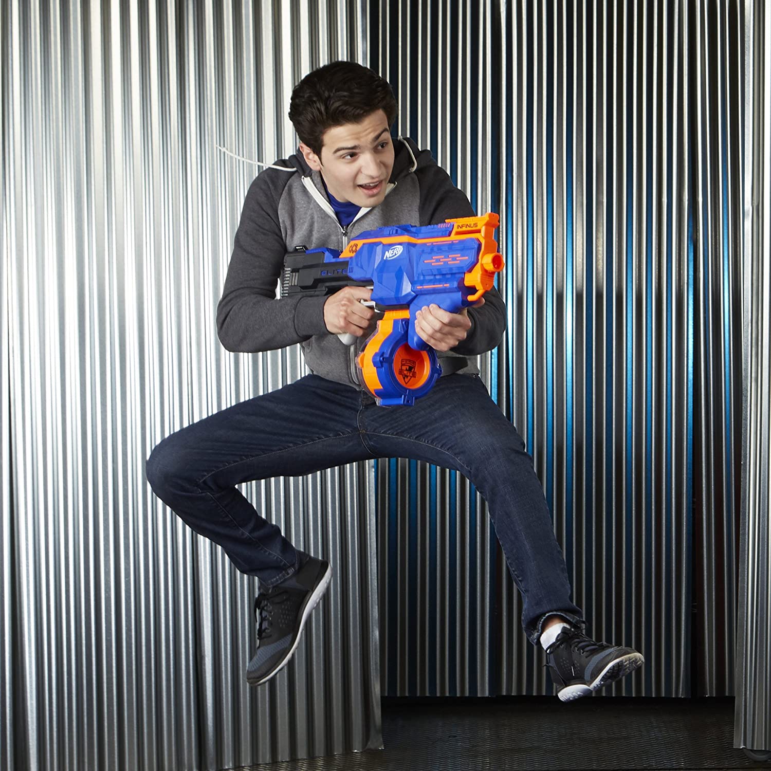 - The N-Strike Elite Infinus blaster is fully motorized to shoot 30 darts fast for intense Nerf battles -- batteries required (not included)
