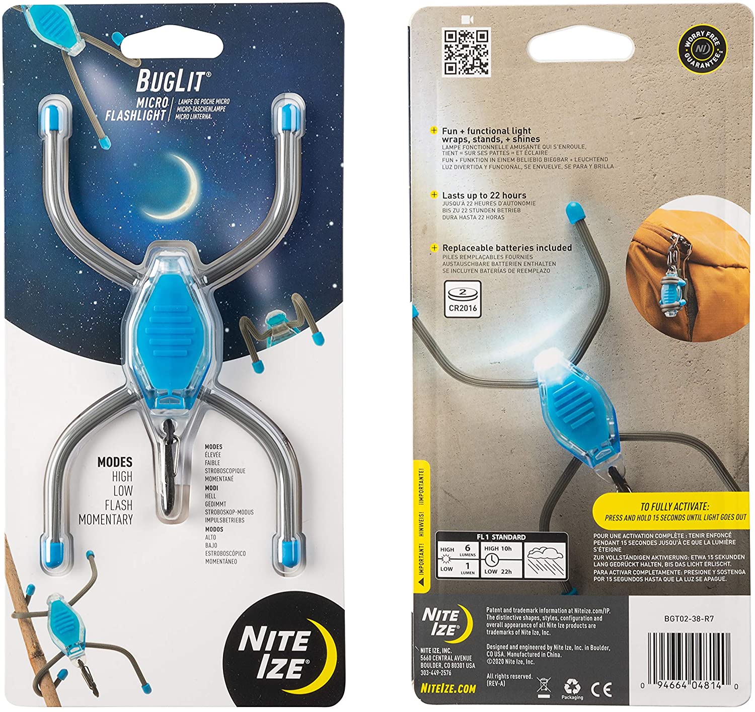 - SIMPLE & RELIABLE SHINE - The BugLit has a run time of 22 hours on low and 10 hours on high and includes 2 easily replaceable CR2016 3V Lithium batteries