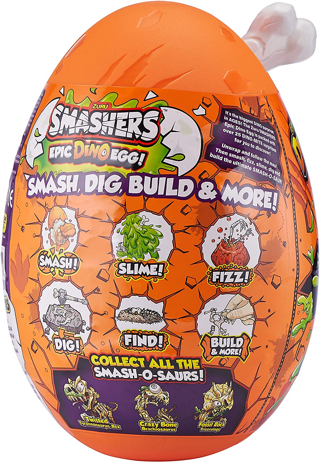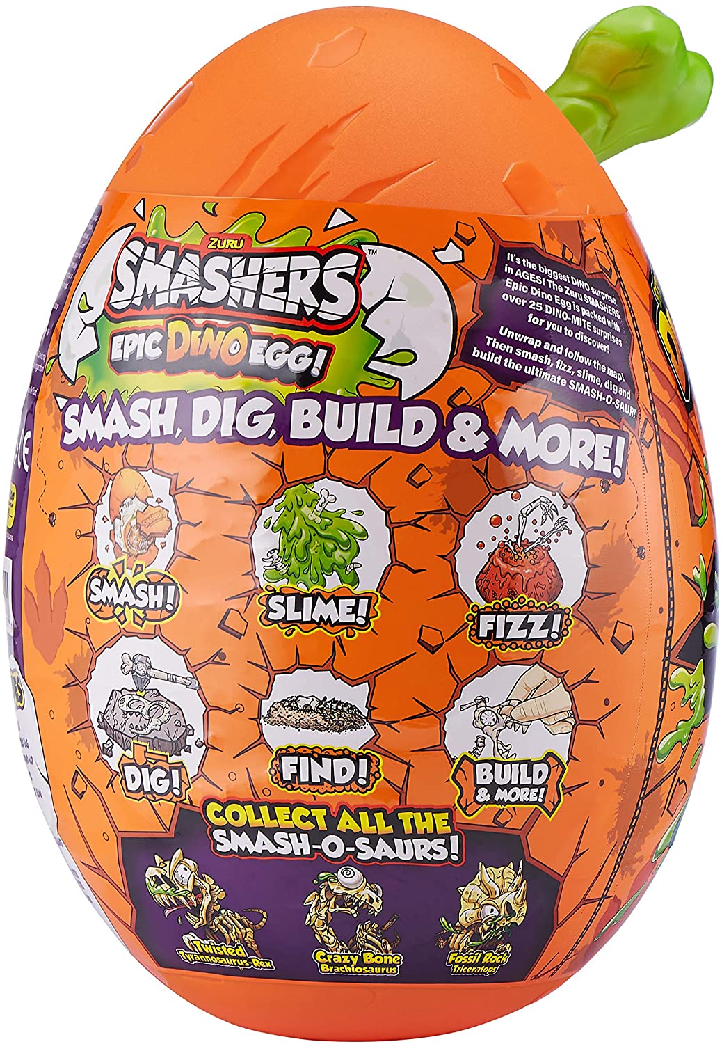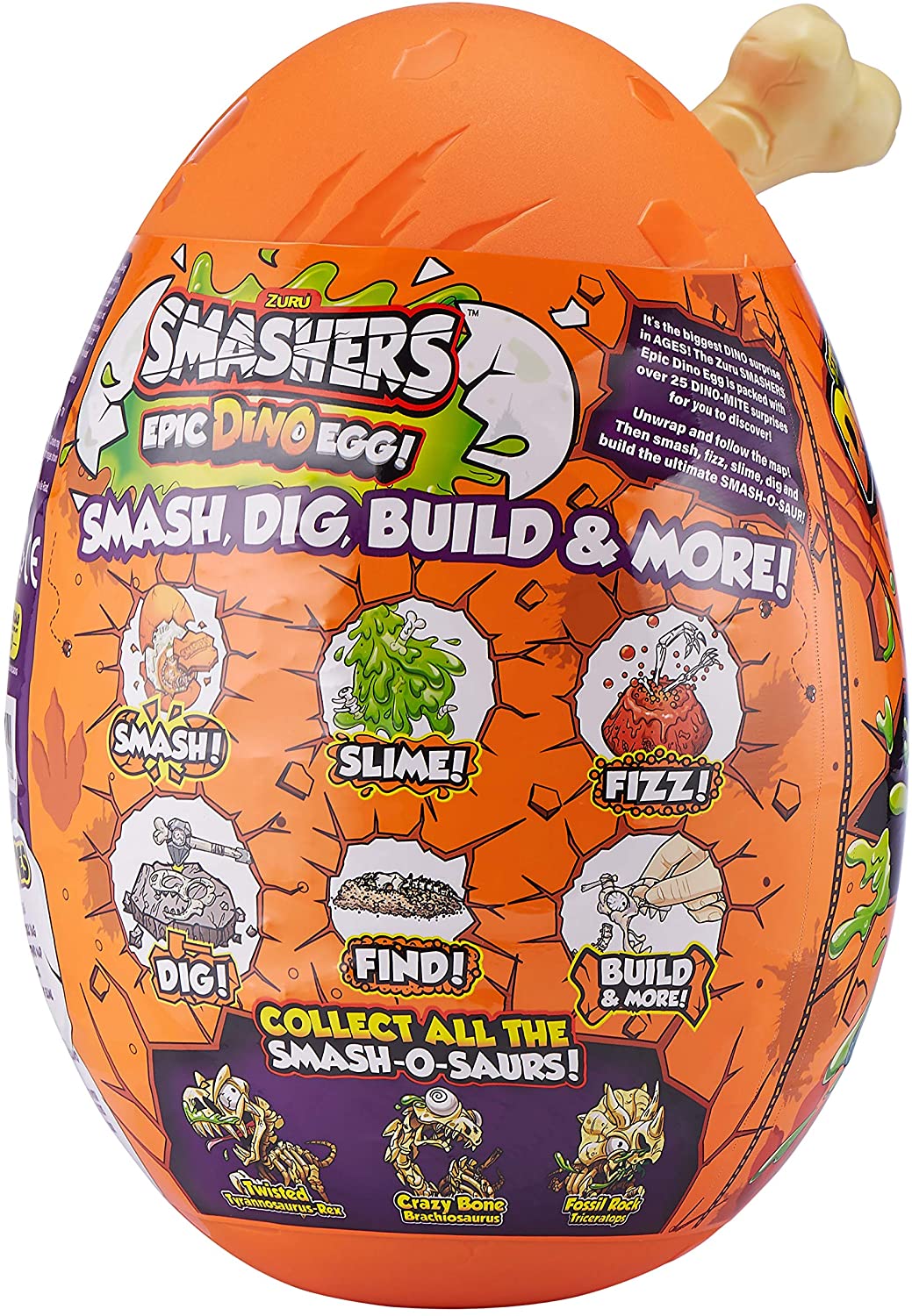 - SMASHERS ALL NEW EPIC DINO EGG: smash open the new smash egg to find what's crawling inside! Over 25 surprises to slime, fizz and smash your way through!