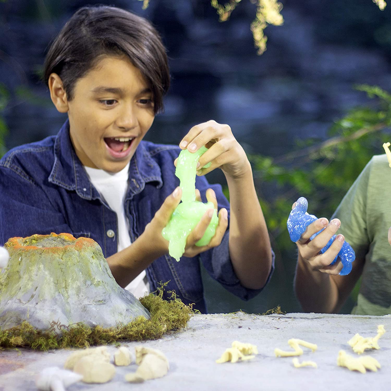 Slime, fizz and smash your way through over 25 surprises inside to build the exclusive smash-o-saur Dino! Use the scratch map to excavate the Dino egg to unearth compounds like the fizzy lava bomb and ice age putty with hidden smash-o-saur bones. Collect all the bones to start building one of 3 exclusive smash-o-saucers! Inside each epic Dino egg, you'll discover MORE surprises like smash eggs, digging tools and Rebuilders.
