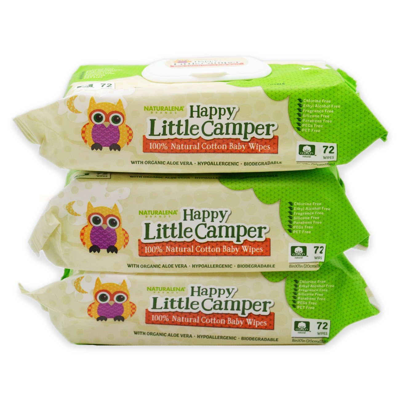 Happy little camper baby wipes are made from 100percent natural cotton, for a softer, stronger, and highly absorbent wipe that's safe for everyday use. Our gentle moisturizing lotion will leave delicate skin feeling clean and refreshed without causing irritation or allergic reactions. And unlike other brands, happy little camper wipes are made from 100percent natural cotton with no synthetic fibers, pet, polyethylene glycols (pegs), parabens, silicones, or alcohol.