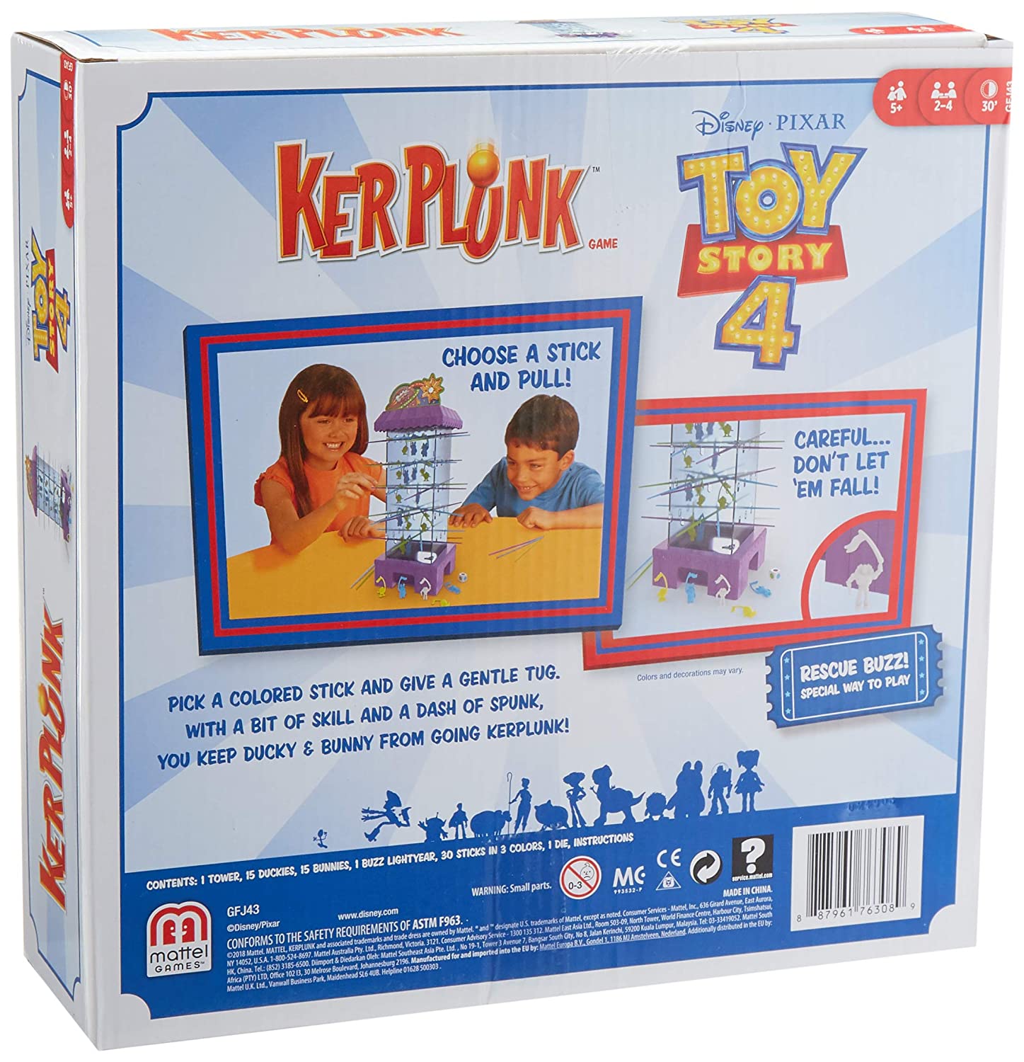 - It’s all of the action-packed Kerplunk! gameplay with a Disney Pixar Toy Story 4 theme that fans will love, featuring a carnival-themed game unit and Ducky and Bunny character pieces.